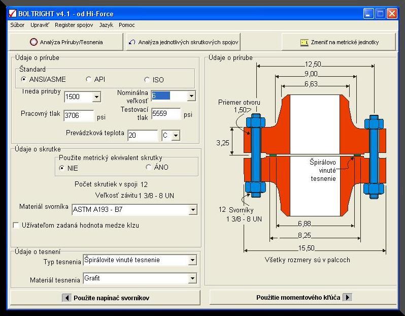 výpočtový formulár spolu s požadovaným krútiacim momentom a počtom