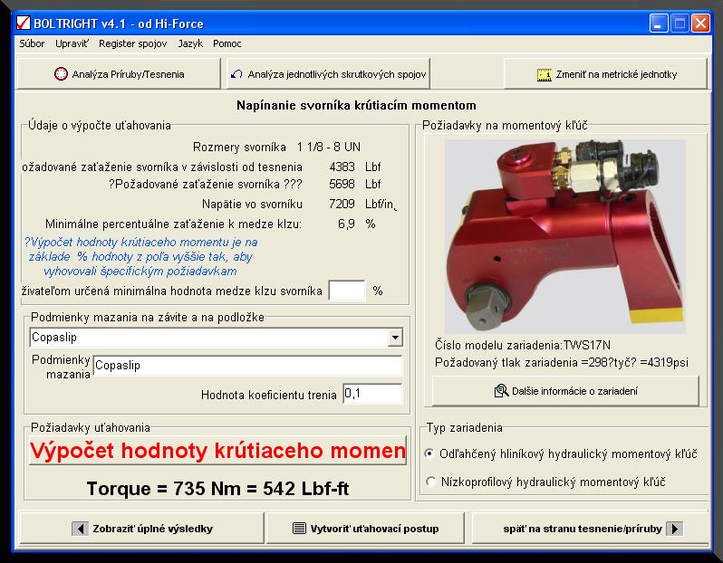 tlaku. Pre aplikácie s momentovým kľúčom BoltRight program vypočíta