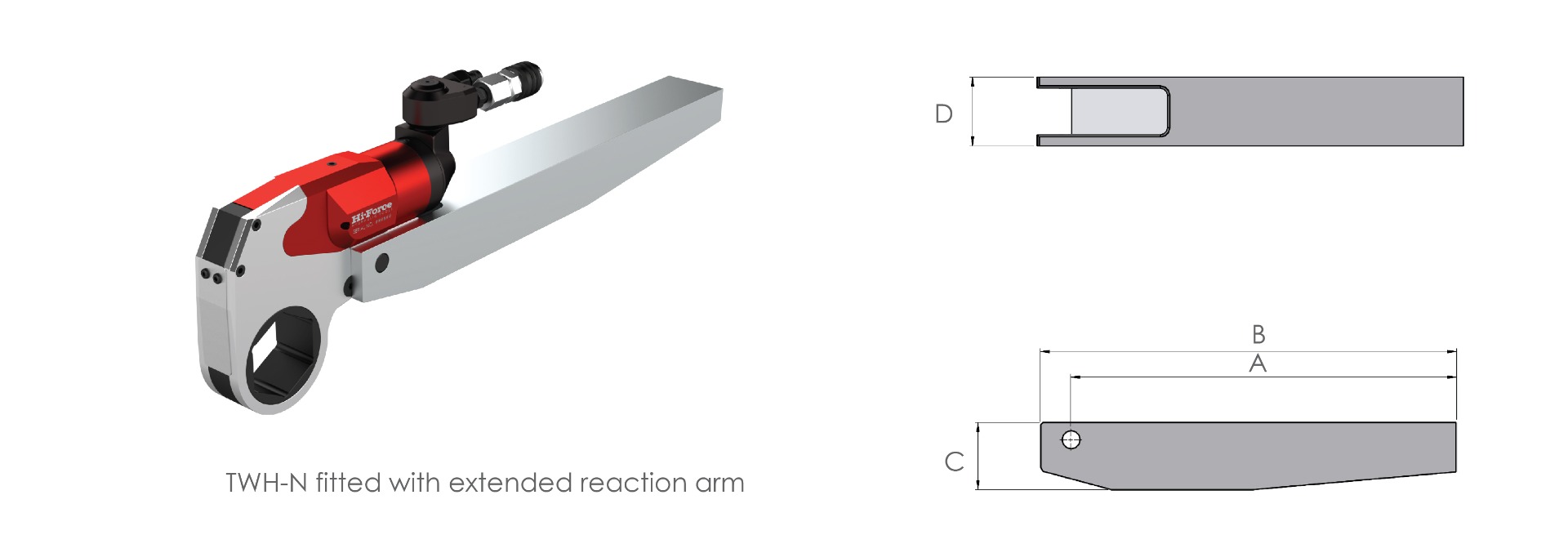 Ľahké predĺžené reakčné ramená sú vyrobené z hliníka a ponúkajú in-line reakciu mimo štandardného rozsahu reakčných bodov, čím zvyšujú dostupnosť kľúčov TWH-N pre aplikácie v stiesnených priestoroch.