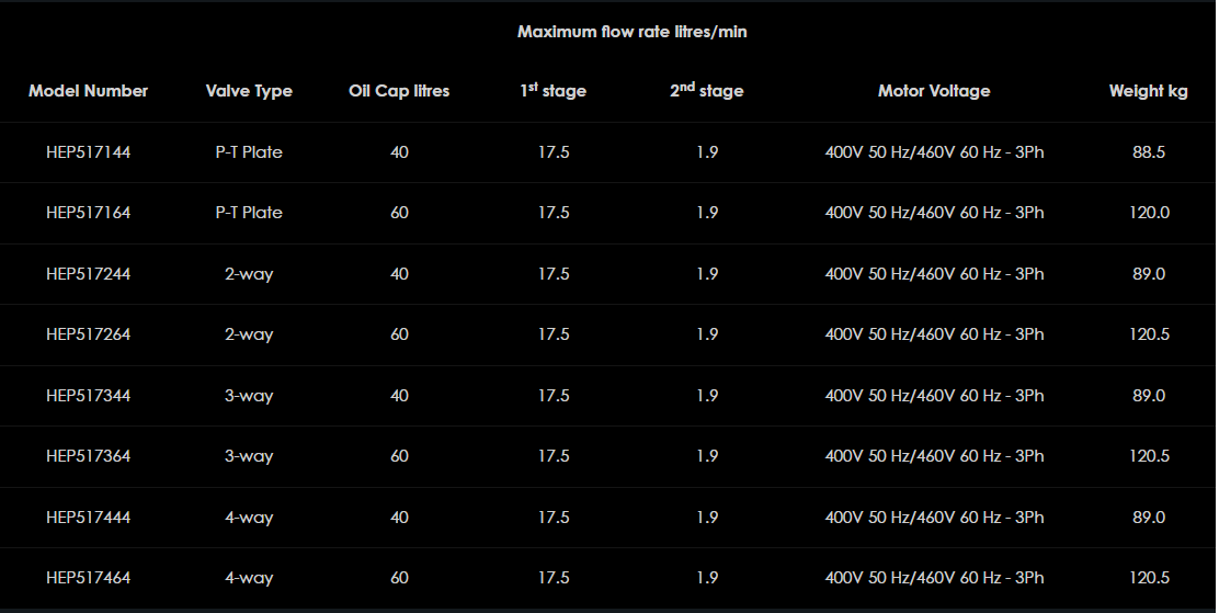 Rad dvojstupňových elektrických hydraulických čerpadiel série HEP5 ponúka kombináciu najvyššieho prietoku v rade Hi-Force. Ponúka nízkotlakový prietok 17,5 l/min s automatickým prepnutím na vynikajúci vysokotlakový prietok 1,9 l/min. HEP5 ponúka všetky funkcie sérií HEP2 a HEP3 s pridaním 2,2 kW vysokorýchlostného, vysokovýkonného motora, čo z neho robí ideálnu čerpaciu jednotku pre všetky náročné aplikácie vyžadujúce vysoký prietok a intenzívne používanie počas dlhších časových období.