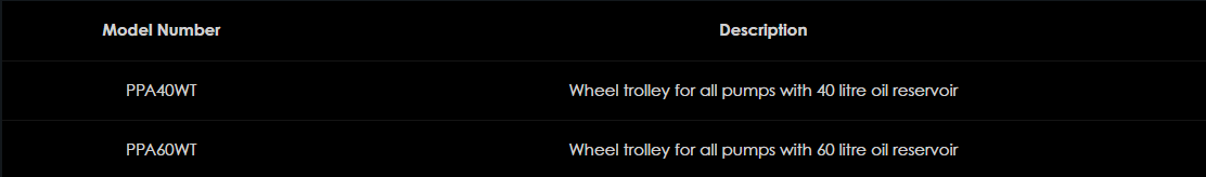 Poznámka: Všetky čerpadlá HEP5 môžu byť dodané s kolesovým vozíkom namontovaným vo výrobe. Stačí pridať číslo modelu čerpadla "WT".
