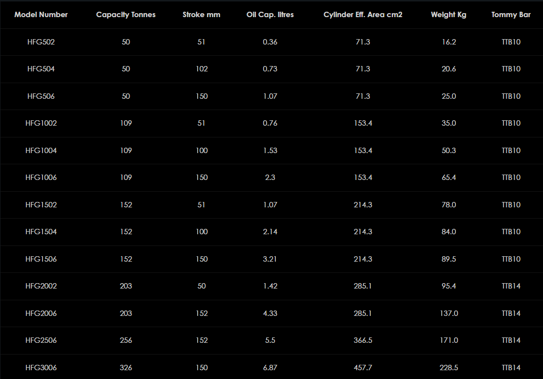 Rad jednočinných vložiek s poistným krúžkom HFG s bezpečnostnými prvkami spája všetku všestrannosť a účinnosť hydraulickej sily s bezpečnosťou mechanickej podpory zaťaženia. Rad HFG je ideálne vhodný pre aplikácie vyžadujúce dlhodobé udržiavanie záťaže, ako sú práce na podoprení mosta, a obsahuje jednočinný piest s návratom záťaže, so závitom po celej dĺžke zdvihu, aby vyhovoval závitovému mechanickému poistnému krúžku na udržanie záťaže. Jednoducho zdvihnite bremeno, naviňte mechanický poistný krúžok, kým sa nedostane do kontaktu s telom valca, uvoľnite hydraulický tlak a mechanicky uchopte bremeno. Všetky modely sú vhodné len na vertikálne zdvíhanie a sú štandardne dodávané so sklopnými sedlami, aby sa znížilo riziko bočného zaťaženia valca.