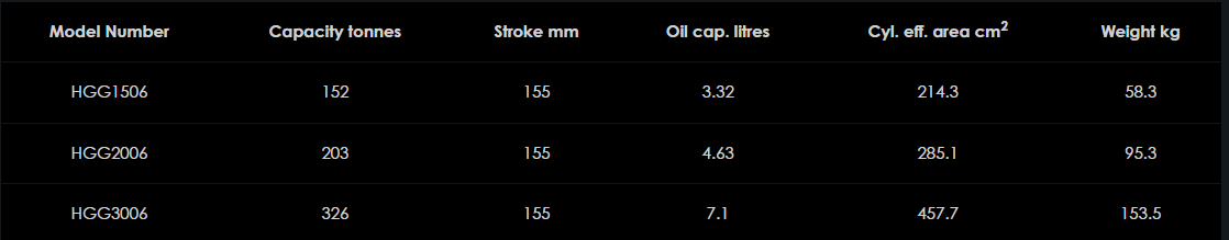 Rad priemyselných valcov HGG s vratným zaťažením je špeciálne navrhnutý pre aplikácie zdvíhania a údržby. Všetky modely sú dodávané so sklopným sedlom, aby sa znížilo riziko poškodenia spôsobeného bočným zaťažením a štandardne je namontovaný integrovaný dorazový krúžok na obmedzenie zdvihu. Tu sú uvedené štandardné modely, ale na požiadanie sú k dispozícii ďalšie kapacity a možnosti zdvihu.