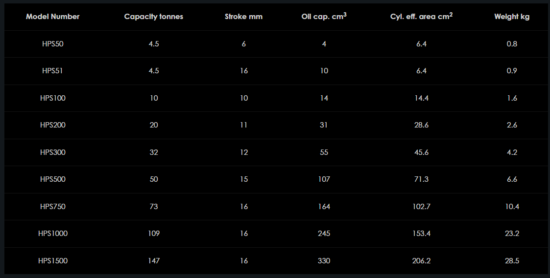 Rad valcov HPS s pružinovým návratom ponúka najlepšiu kombináciu kapacity, zatvorenej výšky a dĺžky zdvihu s pružinovým návratom v tomto odvetví. Tieto vysoko všestranné valce sú ideálne vhodné pre aplikácie, kde je nízka zatvorená výška a maximálny možný zdvih prvoradá. Hojne sa používajú na údržbu, polohovanie konštrukčných zvarov, montáž, oddeľovanie prírub a mnoho ďalších aplikácií.