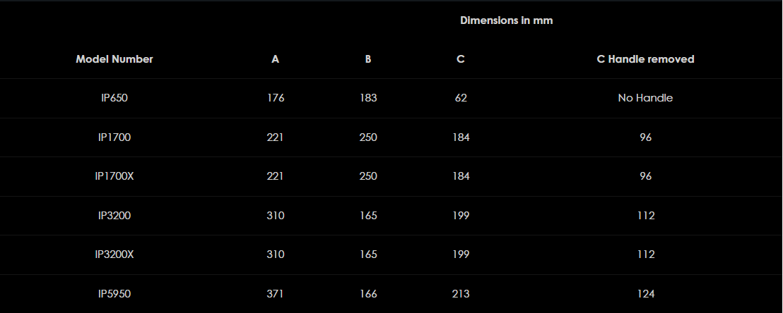 K dispozícii v dvoch verziách, pištoľová rukoväť a zadná rukoväť, séria IP je vybavená buď dvojitým kladivom alebo 3-čeľusťovým kladivovým mechanizmom, pričom obe ponúkajú zvýšený výkon a vyvážený úder pri uťahovaní skrutiek.
