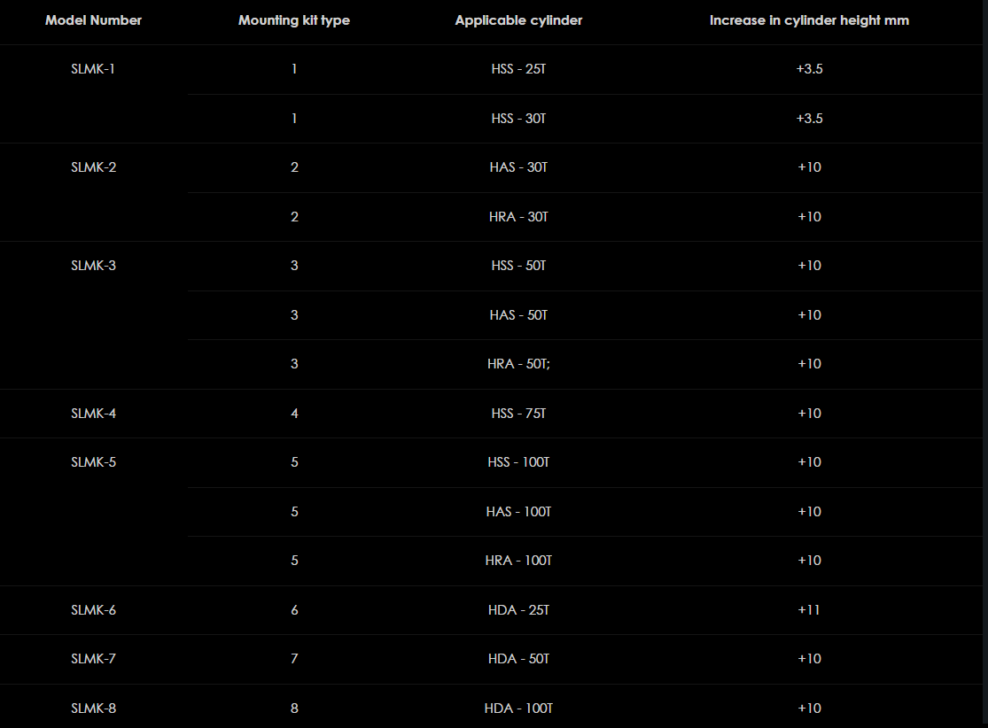 Rad SLV bol navrhnutý na presné zdvíhanie a spúšťanie ťažkých bremien pomocou viacerých synchronizovaných hydraulických valcov. Systém pozostáva z vysokovýkonného trojfázového elektromotora, ovládacieho panela operátora na monitorovanie až 32 kanálov a robustnej konštrukcie na prepravu a skladovanie celého systému.