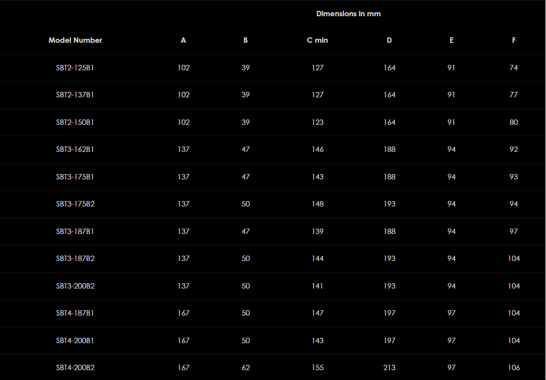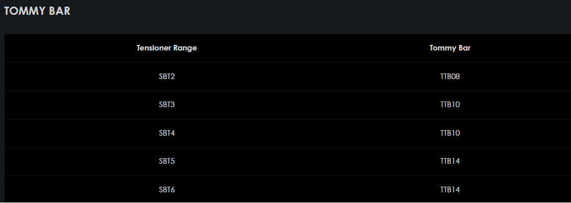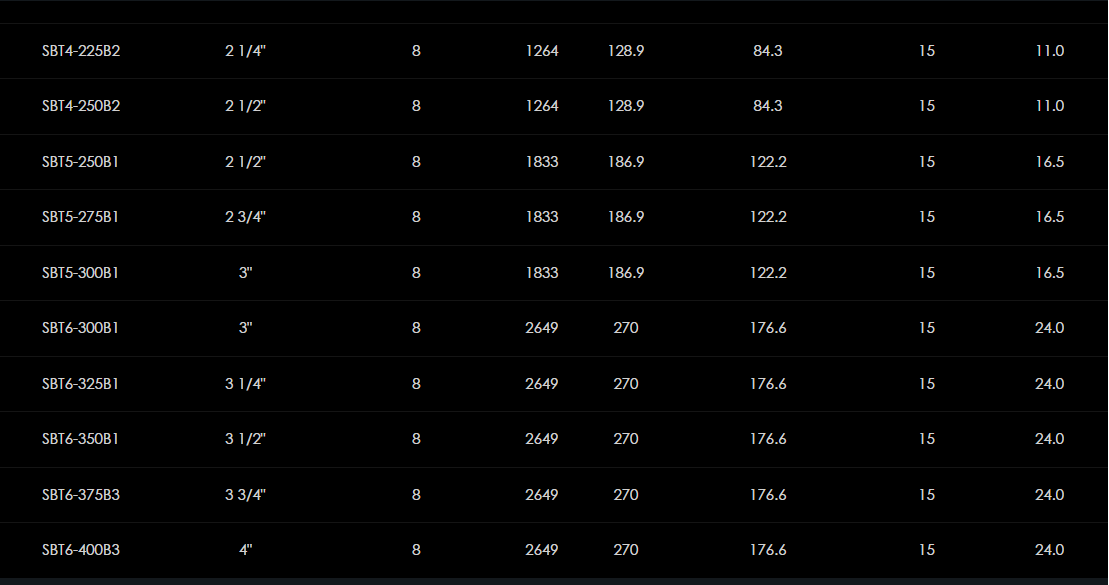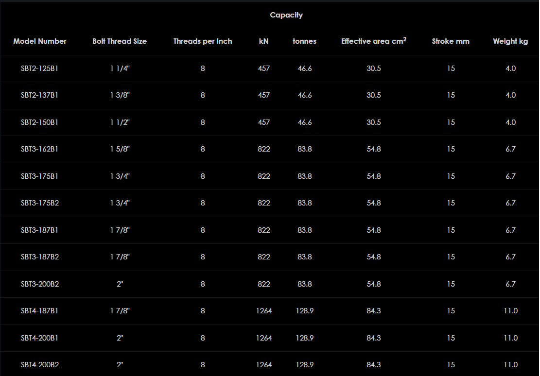 Rad SBT je možné prevádzkovať s rôznymi vymeniteľnými závitovými sťahovákmi a otočnými objímkami pre matice, ktoré sú k dispozícii buď ako súpravy na konverziu veľkosti skrutiek alebo ako jednotlivé diely. Všetky napínače skrutiek SBT sú navrhnuté a vyrobené s piestom potiahnutým opotrebením, indikátorom maximálneho zdvihu, samonabíjacími vysokotlakovými tesneniami, dvojitými rýchlospojkami, ktoré umožňujú jednoduché pripojenie viacerých napínačov a fungujú pri tlakoch až do maximálneho tlaku 1500 barov.