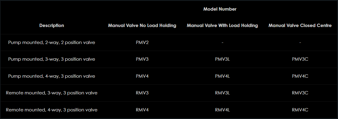 Regulačné ventily Hi-Force sú navrhnuté tak, aby poskytovali presné ovládanie hydraulického systému buď presnou reguláciou tlaku alebo smerového prietoku. Rad ventilov PMV namontovaných na čerpadlách je identický s ventilmi namontovanými na čerpadlách s pohonom Hi-Force a možno ich jednoducho zameniť, vďaka čomu je poháňané čerpadlo ešte všestrannejšie. Rad RMV umožňuje vzdialenú montáž mimo čerpadla.
